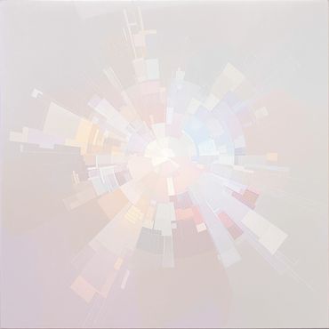 “Let there be light” — the command that brings order from chaos. Lumen rests in that same idea: the transformation of energy into something visible, absence turning to substance. Across eighteen images, the logic of light reveals itself — from gesture to structure, from substance to shimmer. These are synthographs — digital paintings where light itself has learned to draw. The compositions feel etherial yet precise: crystalline networks of reflection and refraction. The palette drifts between white, pearl, pink, mauve, and soft lilac; metallics lend a quiet iridescence. Representation dissolves into resonance. Each image behaves like a presence — something both seen and felt, like sunshine on a summer’s day.